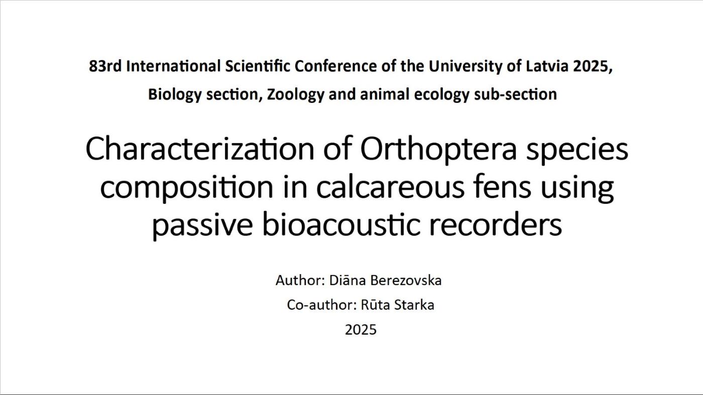 Diāna Berezovska Characterization of orthoptera species composition in calcareous fens using passive bioacoustic recorders.