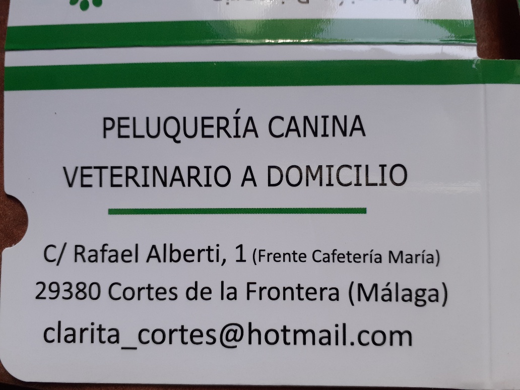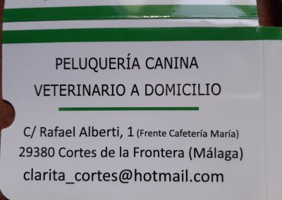 Queremos agradecer la colaboración y dedicación de Clara Álvarez, la veterinaria de Cortes de la Frontera que nos está ayudando con el proyecto. Sin ella esto no sería posible, y también las gracias de nuevo a Javier que nos puso en contacto con ella. Os dejamos aquí los datos del Consultorio veterinario por si algún día necesitarais alguno de sus servicios.
