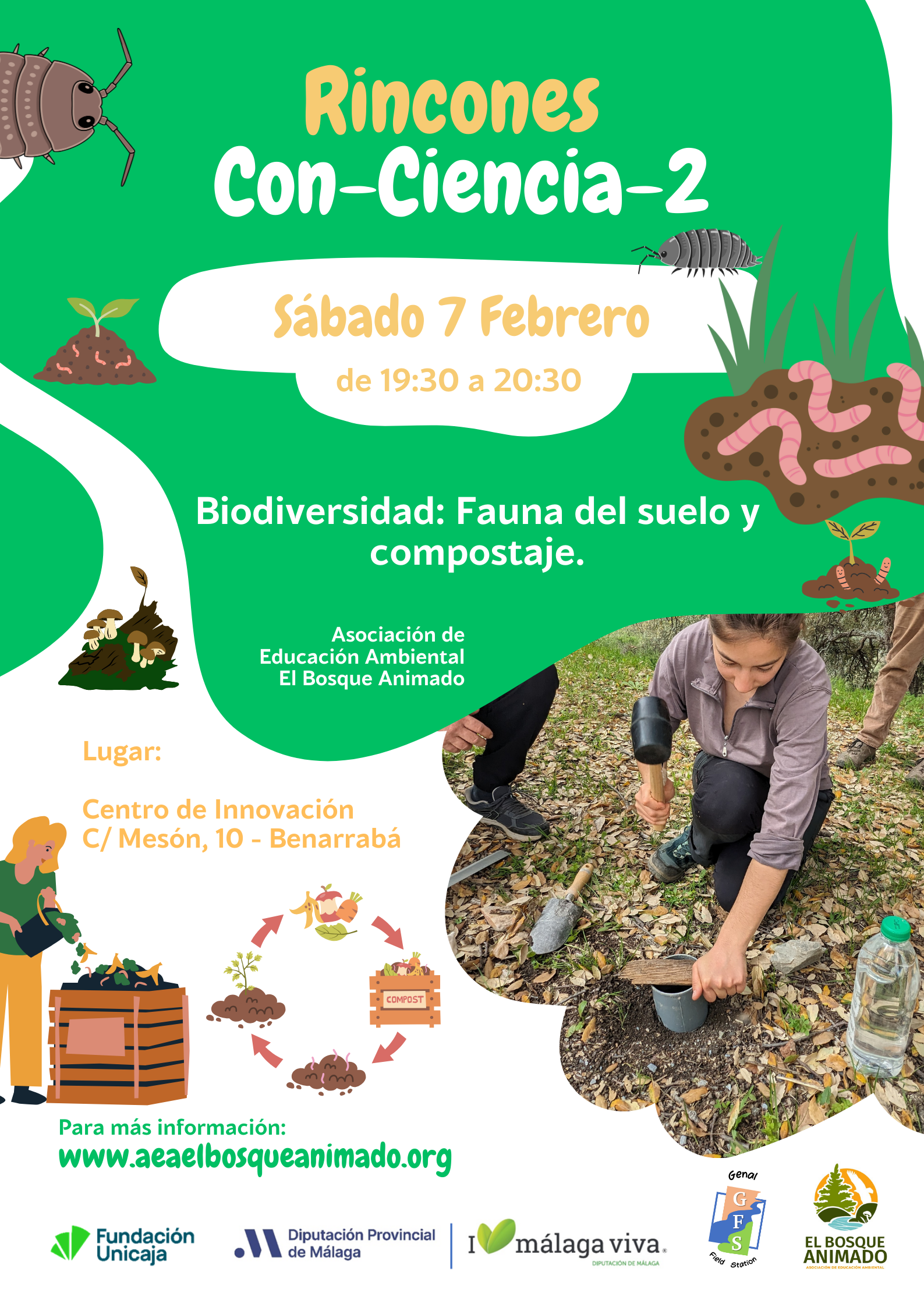 Qué pasa cuando rebuscamos entre la hojarasca? quizás descubramos algunos de los pequeños animalillos que nos ayudan a descomponer la materia orgánica junto con los hongos, prácticamente invisibles. Podemos reconocer lombrices, cochinillas y algún otro bichito, pero hay mucho más. Gracias a ellos el bosque no es una montaña de hojas secas y ramas acumuladas año tras año. También nos ayudan a descomponer la materia orgánica de los restos de comida y poder conseguir un compost buenísmo para que crezcan las plantas de nuestras macetas y arriates. Con esta charla conoceremos un poco más sobre estos pequeños seres vivos y su importancia en la degradación y transformación de la materia orgánica.