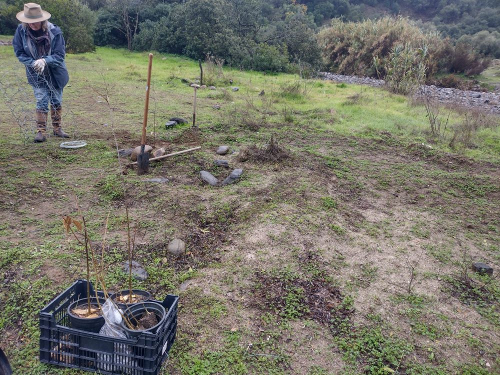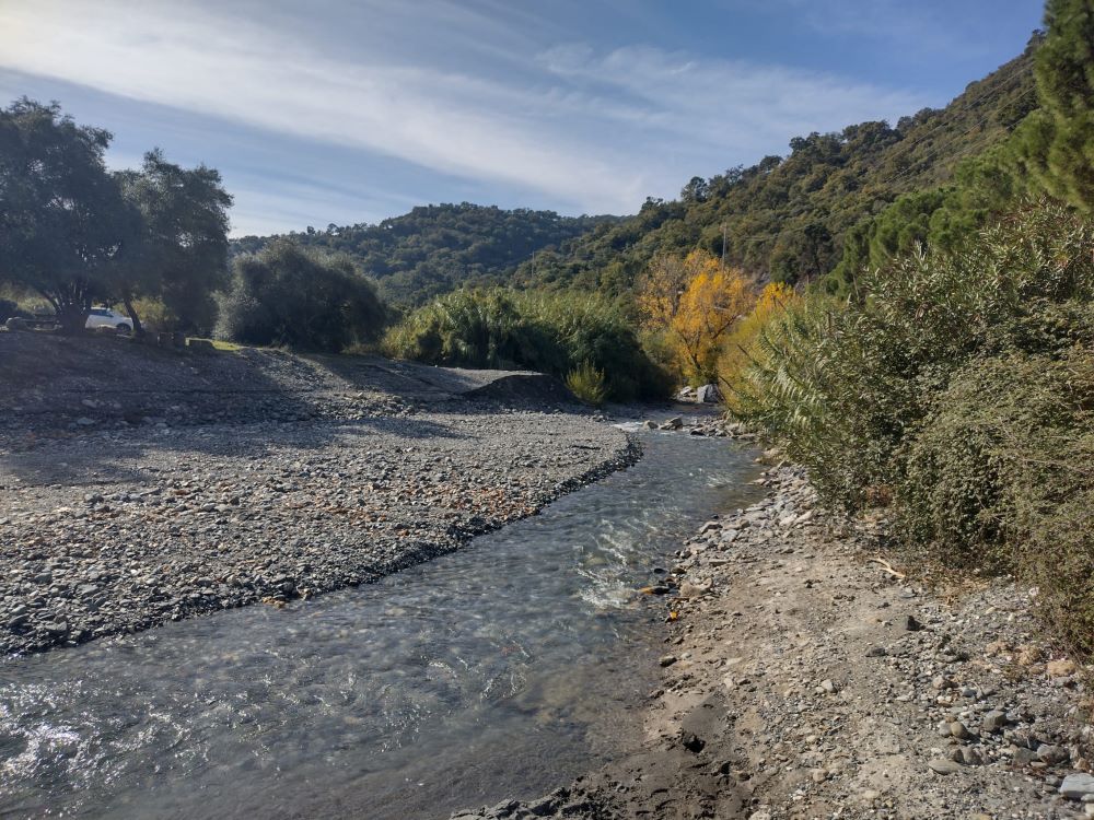 RESULTADOS: En el último momento dos de las voluntarias no pudieron venir, así que como el tiempo era ideal para la plantación continuamos con la actividad en grupo reducido. Queremos dar las gracias a Laura, Brisa y Serena que se unieron a nosotras para ayudarnos con los últimos árboles. Al final fueron 3 almeces y 4 fresnos los que pudimos plantar. El tiempo nublado nos acompañó la mayor parte del tiempo pero al finalizar el sol se abría paso entre las nubes y nos ofreció algunos brillantes rayos otoñales, dimos un pequeño paseo junto al río Genal.